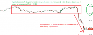 La demanda se refiere a la cantidad de un producto o servicio que desean los compradores. Llevando esto al mercado accionario, la cantidad demandada es la cantidad de acciones que las personas están dispuestas a comprar a un precio determinado. La oferta (vendedores) representa cuánto puede ofrecer el mercado. El precio, por lo tanto, es un reflejo de la oferta y la demanda. Dentro de estos dos conceptos está encerrado el término «equilibrio y desequilibrio».